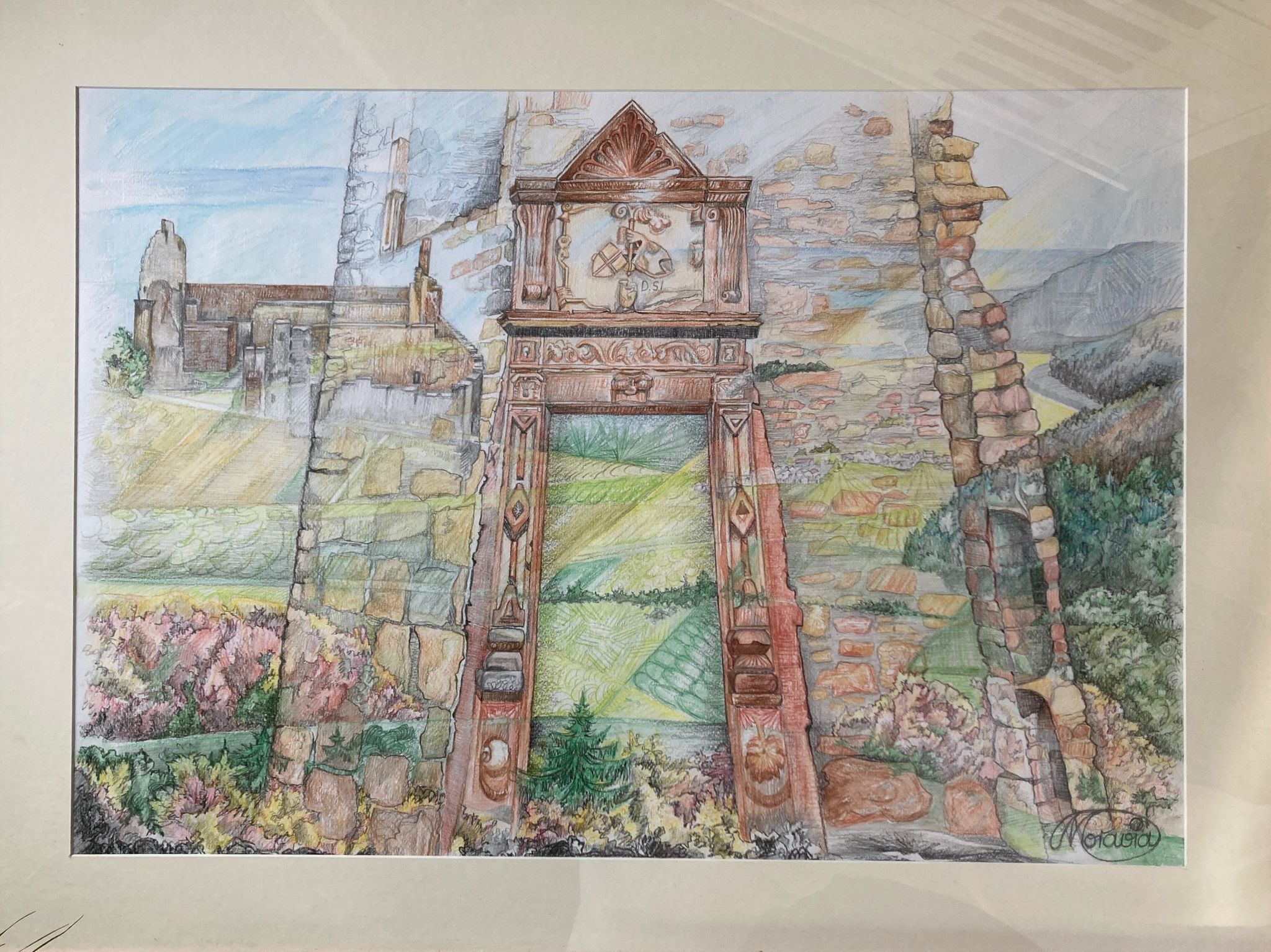Burg in Volldarstellung, transparent, Blick in PfälzerlandKunstwerk-Nr:2540011
