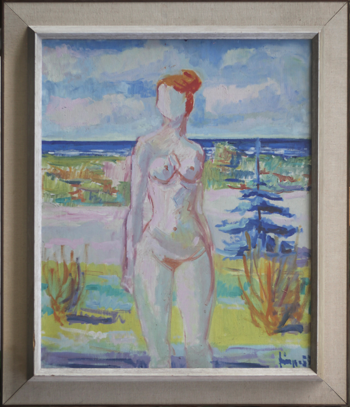 unleserlich signiert - weibl. Akt am Strand
